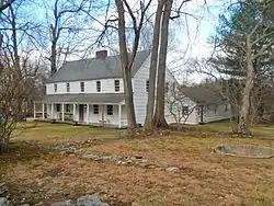 Ezekiel Halsted, a wealthy landowner originally from Long Island, purchased the property from Timothy Knapp's sons in 1746. He expanded the house, adding a second floor using "post-and-beam" construction with a sloping roof in the back containing a dining room and kitchen, which gave the house the distinctive saltbox architecture.[2] Beams are hand-hewn, and some retain their original bark.[2] The house has cellar walls reinforced with lime made from crushed oyster shells, 12-inch wooden nails holding floorboards together and a massive center chimney reinforced with mud mortar.[4] The Halsted family lived in the house for the next 157 years.[3]