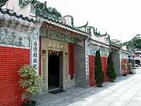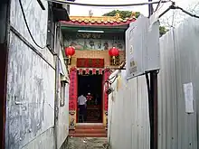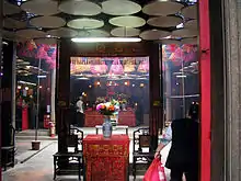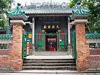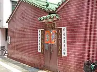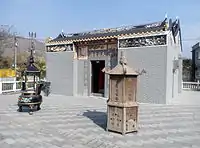 Shau Kei Wan Tin Hau Temple (筲箕灣天后廟) The original temple, built in 1845,[8] was destroyed by a typhoon in 1872. A new temple was erected in-situ in 1873.[9] Originally situated on a slope with its front part facing the sea. Renovated in 1876, 1902, 1920, 1948 and 2005. Managed by the Chinese Temples Committee.[10] The interior of the temple can be explored with Google Street View. |