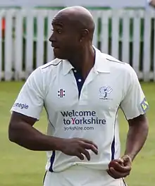 Best signed a contract with Yorkshire County Cricket Club in April 2010 to represent them until the end of May.[21] After some good performances, his contract was extended, but his form tailed off and he was demoted from opening the bowling, before being dropped from the team at the end of July.[22][23] In nine first-class matches for the club, Best managed 18 wickets at a cost of 44.05 runs each.[24][25] He was more successful in Yorkshire's one-day matches, taking ten wickets from five matches at an average of less than 20.[26][27] In August 2010, Best's central contract was not renewed.[28]