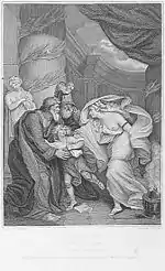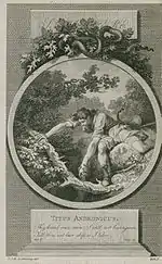 The name of Lavinia was probably taken from the mythological figure of Lavinia, daughter of Latinus, King of Latium, who, in Virgil's Aeneid, courts Aeneas as he attempts to settle his people in Latium. A. C. Hamilton speculates that the name of Tamora could have been based upon the historical figure of Tomyris, a violent and uncompromising Massagetae queen.[19] Eugene M. Waith suggests that the name of Tamora's son, Alarbus, could have come from George Puttenham's The Arte of English Poesie (1589), which contains the line "the Roman prince did daunt/Wild Africans and the lawless Alarbes."[20] G. K. Hunter has suggested Shakespeare may have taken Saturninus's name from Herodian's History of the Empire from the Death of Marcus, which features a jealous and violent tribune named Saturninus.[21] On the other hand, Waith speculates that Shakespeare may have been thinking of an astrological theory which he could have seen in Guy Marchant's The Kalendayr of the shyppars (1503), which states that Saturnine men (i.e. men born under the influence of Saturn) are "false, envious and malicious."[22]