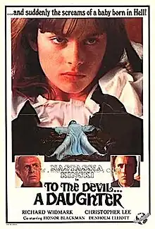 To the Devil a Daughter, sometimes stylized as To the Devil... a Daughter,[4] is a 1976 horror film directed by Peter Sykes and starring Richard Widmark, Christopher Lee, Honor Blackman, Nastassja Kinski, and Denholm Elliott. Based on the 1953 novel of the same name by Dennis Wheatley, it follows an American occult researcher in England who attempts to save a young girl preyed upon by a Satanic cult led by a fallen Catholic priest.