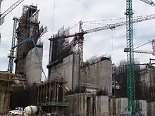 The first generator was installed but not yet commissioned in April 2012.[8] Behind schedule, the dam began to impound its reservoir on 16 November 2015.[9] The budget tripled to $9,4 billion in 2017, as of 2019 the project is still unfinished.[3] Odebrecht spent between 2007 and 2015 at least $118 million on bribes related to the project.[10][11]