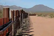 The pre-contact legacy and economic lifestyles of the Oʼodham gave them a "transnational identity", but Indigenous conflicts on the Mexico–United States barrier arose. Land theft and forced assimilation decreased the numbers of southern Oʼodham and alienated them from their northern counterparts. By 1910, it was estimated that only 1,000 Oʼodham remained in Mexico.[28] The disparities in wealth between the two sides also led to cultural shifts. The traditional practice of lending between Oʼodham decreased as many Arizona Oʼodham felt that those on the Mexican side would not be able to pay loans back. During WWI concerns were raised about the proximity of the Oʼodham to the border, but the U.S. government ignored requests for additional military presence and trans-border smuggling thrived in the 1910s and 1920s.[24]: 112 This included liquor, food, and guns. The War Department attempted to halt these illegal activities, but the reporting system on such a wide area of land was slow and ineffective. Ironically, the Oʼodham were accused of participating in the Yaquis' international weapons smuggling.[24]: 116 As Mexicans were deported during the Great Depression, the Mexican government gave them Oʼodham tribal lands.[25]: 141 Notions of isolation were further intensified during WWII as the U.S. Mexico border was militarized to protect against potential invasions via the Sea of Cortez, and tribal lands in Sonora were privatized to increase government production.[29][30] In 1977 the Los Angeles Times published a scathing article, writing that Mexican O'odham were taking advantage of medical facilities and welfare checks on the Arizona side of the border.[25]: 156 An increase in militarization occurred again in the 1980s and 1990s, and further inhibited the ability of tribal members to travel back and forth and slowed migration. The Mexican government made gestures to improve the condition of the O'odham in Mexico by opening the office of the National Indian Institute, but the office struggled with inadequate resources and institutionalized corruption. In the 1980s, O'odham in Sonora responded to decades of land theft and bureaucratic failure by staging an occupation at the "weak and underfunded" National Indian Institute offices. the tribal constitution ratified in 1986 reads: "All members of the Tohono O'odham Nation shall be given equal opportunity to participate in the economic resources and activities of the Tohono O'odham Nation."[31] However, many tribal members felt that these promises were not guaranteed for them. At the end of the decade, O'odham on the Mexican side of the border wrote an "open letter" to O'odham on the American side. In the letter they stated: "our human rights and aboriginal rights have slowly been violated or disappeared in Mexico."[25]: 132–133 This articulated the concerns among many Oʼodham about the growing international divide and population loss in Sonora. In its 1990 census, the government of Mexico recorded no Oʼodham living in Sonora.[25]: 160