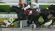 1 The 2010, 2011 and 2012 races took place at Kyoto Racecourse. 2 Vanyar crossed the finish line first but was disqualified because the jockey fell off.[5]
