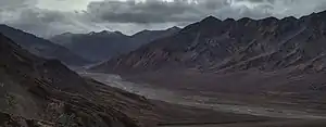 The Toklat River (Lower Tanana: Tootl'o Huno') is an 85-mile (137 km) tributary of the Kantishna River in central Alaska in the United States[3] It drains an area on the north slope of the Alaska Range on the south edge of the Tanana Valley southwest of Fairbanks.[4] It issues from unnamed glaciers in the northern Alaska Range in Denali National Park and Preserve, northeast of Denali.[4] It flows generally northwest through hilly country[4] to the tundra to the north of the Alaska Range.