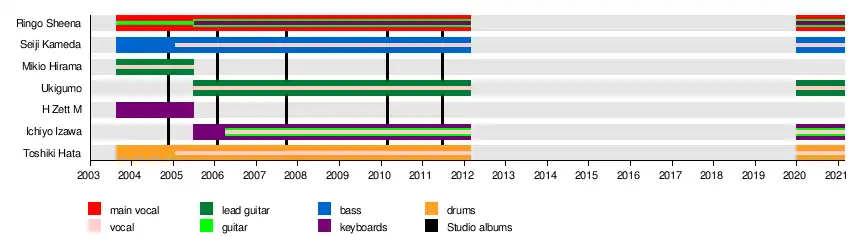 After the departure of the band's former guitarist and keyboardist, Sheena began a search for new members. She was going to have at least a keyboard player join because two people left the band at the same time. H ZETT M recommended his friend and former bandmate, Keitaro Izawa, as a substitute for him to Sheena, but she began visiting music clubs to look for other keyboardists.[3] In the end she found no one who was better than Izawa, and Sheena decided to invite him to join. He assumed the stage name of Ichiyo Izawa during his time with the band.