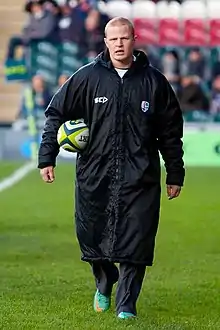 Homer also kicked two penalties in the Exiles' 38–17 win over Worcester on 15 March 2009,[3] and kicked eight from eight (six penalties and two conversions) against Northampton Saints on 22 March 2009.[4][5] At the start of the 2012-13 Premiership campaign Homer stated that he wanted to be known for more than just his kicking and was looking to get more involved and to use the opportunity of the attacking blueprint of coach Brian Smith to do so.[6] Homer cites former England centre Mike Catt as a major influence.[7]
