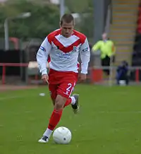 Released by the club at the end of the 2005–06 season, he signed for Hamilton Academical in August 2006,[5] and established himself as the club's first-choice right back. The following year he was an integral part of the impressive 2007–08 season title winning team, and part of a defence that only conceded three goals at home the entire season.[6]