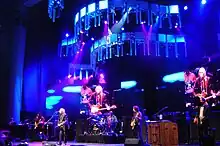 The band's twelfth album Mojo was released on June 15, 2010, and reached number two on the Billboard 200 album chart.[36] Petty described the album as "Blues-based. Some of the tunes are longer, more jam-y kind of music. A couple of tracks really sound like the Allman Brothers—not the songs but the atmosphere of the band."[47] To promote the record, the band appeared as the musical guests on Saturday Night Live on May 17, 2010.[48] The release of Mojo was followed by a North American summer tour. Prior to the tour, five of the band's guitars, including two owned by Petty, were stolen from their practice space in Culver City, California in April 2010. The items were recovered by Los Angeles police the next week.[49]