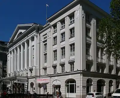 In 1989, Waits began planning a collaboration with Robert Wilson, a theater director he had known throughout the 1980s. Their project was the "cowboy opera" The Black Rider. It was based on a German folk tale, the Freischütz, which had earlier inspired Carl Maria von Weber's opera Der Freischütz (1821).[199] In 2004, Waits related that "Wilson is my teacher. There's nobody that's affected me that much as an artist".[200] Waits wrote the music and, at the suggestion of Allen Ginsberg, Waits and Wilson approached William S. Burroughs to pen the lyrics. They flew to Kansas to meet with Burroughs, who agreed to join the project. Waits traveled to Hamburg in May 1989 to work on the project, and was later joined there by Burroughs.[201] The Black Rider debuted in Hamburg's Thalia in March 1990.[202] On completing its run at the Thalia, the play went on an international tour,[203] with a second run of performances occurring in the mid-2000s.[204]