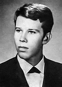 During the summers, he visited maternal relatives in Gridley and Marysville. He later recalled that it was an uncle's raspy, gravelly voice that inspired his singing voice.[12] In 1959, his parents separated and his father moved away from the family home, a traumatic experience for 10-year-old Waits.[13] Alma took her children and relocated to Chula Vista, a middle-class suburb of San Diego.[14] Jesse visited the family there, taking his children on trips to Tijuana.[15] In nearby Southeast San Diego, Waits attended O'Farrell Community School, where he fronted a school band, the Systems,[16] later describing the group as "white kids trying to get that Motown sound." He developed a love of R&B and soul singers like Ray Charles, and Wilson Pickett, as well as country music and Roy Orbison.[17] Bob Dylan later became a strong influence; Waits placed transcriptions of Dylan's lyrics on his bedroom walls.[18] He says that "for a songwriter, Dylan is as essential as a hammer and nails and saw are to a carpenter."[19]