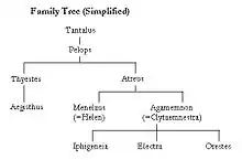 The tomb is named for Aegisthus, the mythological lover of Clytemnestra, wife of king Agamemnon of Mycenae. In Greek mythology, Aegisthus first murdered Atreus, Agamemnon's father, in order to restore his own father Thyestes to the throne; then, after Agamemnon drove him from power and departed for the Trojan War, Aegisthus became the lover of Clytemnestra and, on Agamemnon's return from Troy, assisted her in murdering the king. He then ruled Mycenae for seven years until he was killed in turn by Orestes, Agamemnon's son, alongside Clytemnestra.[14]