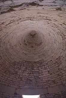The surface of the tomb was covered with coat of white plaster.[6] The burial chamber has a diameter of 13.4 metres (44 ft). Most blocks are sawn rather than hammer-dressed. The tomb chamber is constructed throughout of ashlar conglomerate masonry.[4]