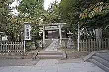 - ↑ The sign in Japanese on the spot delicately says the Buddhist temple was "rebuilt" as Shirahata Jinja.