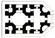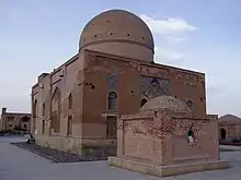 The mausoleum is built from brick, and is octagonal in shape.[2] It is situated in the center of a garden, with an area of approximately 30,000 square metres.[3] The area of the building is approximately 196 square metres, from its northern to southern facade.[3]