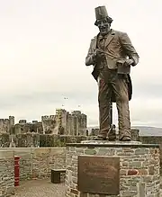 A statue of Cooper was unveiled in his birthplace, Caerphilly, in 2008 by Sir Anthony Hopkins, who is patron of the Tommy Cooper Society.[35] The statue, which cost £45,000, was sculpted by James Done.[36] In 2009, for Red Nose Day, a charity Red Nose was put on the statue, but the nose was stolen.[37]