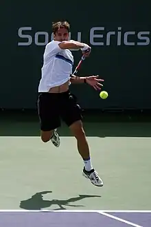 Tomás Robredo Garcés, known as Tommy Robredo (Spanish pronunciation: [ˈtomi roˈβɾeðo ɣaɾˈθes],[lower-alpha 1][3] Catalan: [ɡəɾˈses]; born 1 May 1982), is a Spanish former professional tennis player.[4] His career-high singles ranking was world No. 5, which he reached in August 2006 as a result of winning the Hamburg Masters earlier in the year. Robredo reached the quarterfinals at seven singles major tournaments. He was also a three-time semifinalist at the US Open men's doubles tournament, and a semifinalist at the Australian Open in mixed doubles.