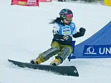 Tomoka Takeuchi (竹内 智香, Takeuchi Tomoka, born 21 December 1983) is a Japanese competitive snowboarder from Asahikawa, Hokkaido.[1] She won the silver medal in the Women's Parallel Giant Slalom in the 2014 Winter Olympics in Sochi, Russia.[2] At the 2018 Winter Olympics in Pyeongchang, South Korea, she placed 5th in the Women's Parallel Giant Slalom.[3]