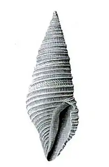 Drawing of an apertural view of a shell of Tomopleura cicatrigula