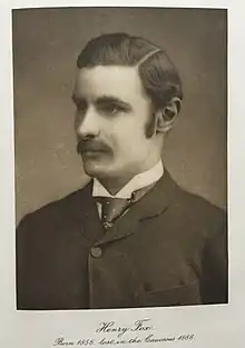 Harry Fox (30 September 1856 – on or after 30 August 1888) was an English gentleman (also lived at Tone Dale House) who was a sportsman and adventurer. He played cricket and rugby for his county, and began climbing mountains in the mid-1880s.[11]
