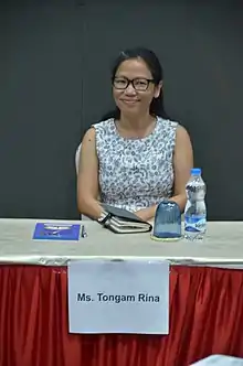 Tongam Rina (born 1979) is an Indian journalist and human rights activist. She is currently (2020) the Deputy Editor of The Arunachal Times and former president of the Arunachal Pradesh Union of Working Journalists. She has been repeatedly threatened, and in 2012, was near-fatally shot outside her office after she wrote critical articles about corruption, militants and dam projects in Arunachal Pradesh.[1][2][3]
