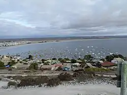 Tongoy Bay (Spanish: Bahía de Tongoy) is a bay in Chile's Coquimbo Region. The bay is U-shaped, open to the north. Its western boundary is made up by the hilly and north-protruding Point Lengua de Vaca. More in detail the west boundary of the bay is made up of a seismic fault known as Puerto Aldea Fault.[1] On the shores of the bay lie the towns of Tongoy and Puerto Aldea and their respective beaches. Tongoy Bay is site of recurrent upwelling of cold, acidic and oxygen-poor seawater.[2] Oysters are cultivated in Tongoy Bay.[2]