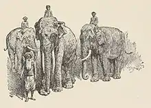 "Toomai of the Elephants" is a short story by Rudyard Kipling about a young elephant-handler. It was first published in the December 1893 issue of St. Nicholas magazine and reprinted in the collection of Kipling short stories, The Jungle Book (1894).[1] The character Petersen Sahib is thought to be modelled on India-born English naturalist George P. Sanderson (1848–1892).[2]