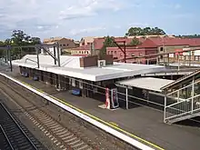 Toongabbie railway station is on the T1 Western Line of the Sydney Trains network. The original unstaffed station opened on 26 April 1880 and was upgraded over the years with additional platforms and loading facilities. In the late 1880s the first rail official was appointed to manage the station, a Miss Amy Arnold. The current station was opened in 1946 and the line was electrified in 1955. The overhead road bridge was opened in 1947 (before that there was a level crossing where the western end of the station platforms are now). The train station was upgraded in the late 2010s to include elevators.