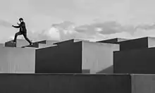 There have been various incidents of vandalism. Despite Eisenman's objections, for example, the pillars were protected by a graffiti-resistant coating because the government worried that neo-Nazis would try to spray paint them with swastikas.[36] Indeed, swastikas were drawn on the stelae on five occasions in its first year.[56] In 2009, swastikas and anti-Semitic slogans were found on 12 of the 2,700 gray stone slabs.[57] In 2014, the German government promised to strengthen security at the memorial after a video published on the Internet showed a man urinating and people launching fireworks from its grey concrete structure on New Year's Eve.[58]