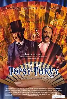 Topsy-Turvy is a 1999 British musical period drama film written and directed by Mike Leigh, starring Jim Broadbent as W. S. Gilbert and Allan Corduner as Sir Arthur Sullivan, along with Timothy Spall, Lesley Manville and Ron Cook. The story concerns the 15-month period in 1884 and 1885 leading up to the premiere of Gilbert and Sullivan's The Mikado. The film focuses on the creative conflict between playwright and composer, and their decision to continue their partnership, which led to their creation of several more Savoy operas.