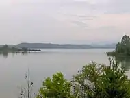 The Little Tennessee River, which flows westward from its source in the Appalachian Mountains, traverses northern Monroe County for roughly 40 miles (64 km) before emptying into the Tennessee River near Lenoir City. Tellico Lake, created in 1979 by the construction of Tellico Dam at the mouth of the Little Tennessee, covers the lower 33 miles (53 km) of the river and the lower 22 miles (35 km) of the Tellico River.[3] The Toqua site was situated along the south bank of the Little Tennessee at its confluence with Toqua Creek, approximately 22 miles (35 km) above the mouth of the river.