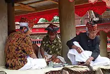 The word Toraja comes from the Buginese language term to riaja, meaning "people of the uplands", this cognates with the Toraja language to raya/to raja/to raa which also means "inland/upland people" or "northern people".[5] The Dutch colonial government named the people Toraja in 1909.[6] Torajans are renowned for their elaborate funeral rites, burial sites carved into rocky cliffs, massive peaked-roof traditional houses known as tongkonan, and colourful wood carvings. Toraja funeral rites are important social events, usually attended by hundreds of people and lasting for several days.