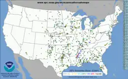 - ↑ "Severe Weather Database Files (1950-2021)". Storm Prediction Center. National Oceanic and Atmospheric Administration. July 11, 2022. Retrieved November 12, 2022.