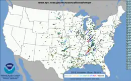 2. "Severe Weather Database Files (1950-2021)". Storm Prediction Center. National Oceanic and Atmospheric Administration. July 11, 2022. Retrieved November 12, 2022.