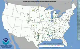 - ↑ "Severe Weather Database Files (1950-2021)". Storm Prediction Center. National Oceanic and Atmospheric Administration. July 11, 2022. Retrieved November 12, 2022.