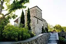 Ancillary structures clustered around the central tower housed the garrison's knights and horses. Over the centuries the architecture has reflected the use of the site. Originally a place of worship in the 8th century, additional structures were added for defensive military purposes in the 10th and 12th centuries. Eventually the site was used as a farm, with most of the structures falling into disrepair.[1]