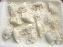 Tortelli cremaschi (dialect of Crema: turtèi cremasch) represents the main dish of the local Cremasque culinary tradition. While tortelli typically have a savoury filling, that of tortelli cremaschi is sweet and cannot be found elsewhere in Italy.[1]