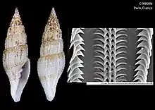| Shell and radula of Tosapusia longirostris (specimen at MNHN, Paris) | |