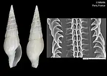 | Shell and radula of Tosapusia turriformis (holotype at MNHN, Paris) | |
