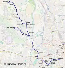 - ↑ "Ultime extension du tram de Toulouse" [Latest extension of Toulouse tramway]. www.railpassion.fr (in French). 2019-03-06. Retrieved 2020-06-19.