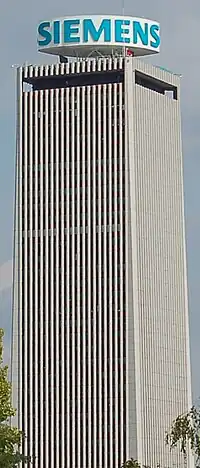Built in 1972, the tower is 129 metres tall. At the top is a large turning advertising sign, in place since 1997 (the advertisement was firstly for Philips, then for Siemens from 2006 to 2013, and is currently for Kia Motors). Including that advertising sign, the total height of the tower is 143 m.