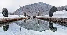 Verinag (/ˈveɪriːnɑːɡ/) is a town named after and famous for the Verinag spring and Mughal garden, near Anantnag city in the Anantnag district of the union territory of Jammu and Kashmir, India. It is a notified area committee with tehsil status (Shahabad Bala Verinag) and is about 26 kilometers away from Anantnag and approximately 78 kilometres south-east from Srinagar which is the summer capital of the union territory of Jammu and Kashmir. Verinag is also the first tourist spot of Kashmir Valley when travelling by road from Jammu, the winter capital of the union territory of Jammu and Kashmir towards Srinagar. There is an octagonal stone basin at Verinag Spring and an arcade surrounding it which were built by Mughal emperor Jahangir in 1620 A.D. Later, a beautiful garden next to this spring, was laid out by his son Shah Jahan. This spring is known to never dry up or overflow. Verinag Spring is also the major source of river Jhelum. Verinag Spring and Mughal Arcade surrounding it is officially recognized by Archaeological Survey of India as a Monument of National Importance.[33]