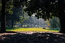 - Parco Papa Giovanni Paolo II ("Pope John Paul II Park"),[24] best known by its historic name Parco delle Basiliche ("Basilicas Park")[25] is a city park of Milan, located in Zone 1. It owes its name to the fact that it connects two major basilicas, the Basilica of San Lorenzo and the Basilica of Sant'Eustorgio. The park has an overall area of 40.700 m2, bisected by Via Molino delle Armi, one of the avenues comprising the Cerchia dei Navigli ring road (this was originally intended to be adapted into an underpass, but the plan was never implemented).[24]
