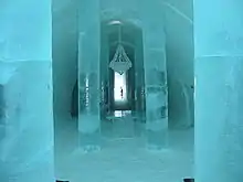 In the winter, the Jukkasjärvi ice hotel is built every year near the northern town of Kiruna. Kiruna is also frequently used as a place from which to see the Aurora Borealis (Northern lights).