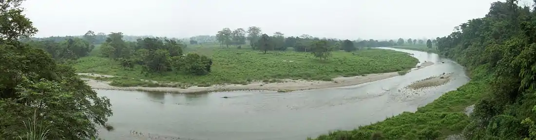 Wildlife include Indian rhinoceros, Indian elephant, deer, bison, leopard, gaur, tiger and crocodiles, as well as many bird species. Migratory birds come to the state during the winter.[27] The high-altitude forests of Singalila National Park shelter barking deer, red panda, chinkara, takin, serow, pangolin, minivet and Kalij pheasants. The Sundarbans are noted for a reserve project conserving the endangered Bengal tiger, although the forest hosts many other endangered species, such as the Gangetic dolphin, river terrapin and estuarine crocodile.[28] The mangrove forest also acts as a natural fish nursery, supporting coastal fishes along the Bay of Bengal.[28] Recognizing its special conservation value, Sundarban area has been declared as a Biosphere Reserve.[20]