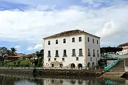 The town hall, due to its volume and location on the Jaguaripe River, is visible from great distance by water and land. The Ladeira da Ajuda, a stone paved street, extends from the Parish Church of Our Lady of Help (Igreja Matriz de Nossa Senhora da Ajuda) at the highest point in the city down to the town hall, and forms the central axis of the city. The upper floor of the town hall has views of both the town of Jaguaripe towards the Church of Ajuda and the region surrounding the Jaguaripe River. It opens to the Praça da Bandeira, a broad public square.[2][3]