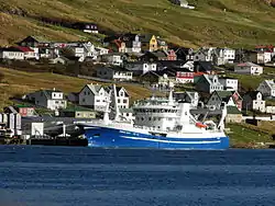 Tróndur í Gøtu is a Faroese a fishing trawler and purse seiner. It belongs to the Faroese company Varðin, based in Syðrugøta. Tróndur í Gøtu is active in the pelagic fishing industry and fishes mainly mackerel, herring, capelin and blue whiting in the sea around the Faroe Islands and elsewhere, depending on where the Faroe Islands gets fishing quotas. The ship was built in 2010 on Karstensens Skibsværft A/S in Skagen, Denmark. Tróndur í Gøtu lands most of its catches to the pelagic fish factory Varðin Pelagic in Tvøroyri[3] and to Havsbrún in Fuglafjørður.[4]