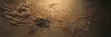 Trachymetopon is an extinct genus of prehistoric coelacanth from the Jurassic of Europe. Fossils have been found in the Early Jurassic Posidonia Shale of Germany the Middle Jurassic Marnes de Dives of France, and probably the Late Jurassic Kimmeridge Clay of England.[1][2] Only one species has been named, Trachymetopon liassicum, described by Henning in 1951 from an almost complete specimen found in the Lower Toarcian of Ohmden in Baden-Württemberg.[3] Another specimen is known from the same site, and two older specimens come from the Sinemurian of Holzmaden.[4] The holotype of this species is 1.6 metres (5 ft 3 in) in length.[4] A giant specimen of an undetermined species of Trachymetopon found at the Middle Jurassic (Late Callovian) Falaises des Vaches Noires of Normandy. This specimen, composed of a 53 cm long palatoquadrate, belongs to an individual 4 metres (13 ft) in length.[5] A basisphenoid found in a museum in Switzerland that likely originates from the same locaity probably belonged to an individual around 5 m (16 ft) long, making Trachymetopon the largest of all coelacanths alongside Mawsonia.[1] A study published in 2015 revealed that this coelacanth belongs to the Mawsoniidae.[4] Trachymetopon is one of the few known mawsoniids to have been exclusively marine (with an indeterminate form from the Triassic of France), while most of the other members of the group have lived in fresh and brackish waters.[6]
