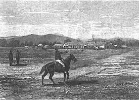 At the beginning of the war, Union soldiers began purchasing supplies from private vendors known as "sutlers".[1] These sutlers set up tradership posts inside U.S. Army forts and were chosen by the regimental officers to do business.[1] This policy changed in 1870, when Secretary of War Belknap lobbied Congress to pass a law vesting sole authority in the War Department to license and choose sutlers at Western military forts. The authority previously granted to U.S. Army regimental officers, at the individual forts, was revoked.[1] Both U.S. Army soldiers and Indians shopped and bought supplies at these traderships.[5] These traderships controlled by Sec. Belknap became lucrative monopolies and considered profitable investments during the 1870s.[5]