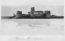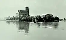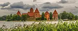 Trakai Island Castle (Lithuanian: Trakų salos pilis; Polish: Zamek w Trokach) is an island castle located in Trakai, Lithuania, on an island in Lake Galvė. The construction of the stone castle was begun in the 14th century by Kęstutis, and around 1409 major works were completed by his son Vytautas the Great, who died in this castle in 1430. Trakai was one of the main centers of the Grand Duchy of Lithuania and the castle held great strategic importance. The castle was rebuilt in the 1950s–1960s by Lithuanian initiative, although it had received resistance from Soviet authorities. The Trakai History Museum was established after the reconstruction.[1]